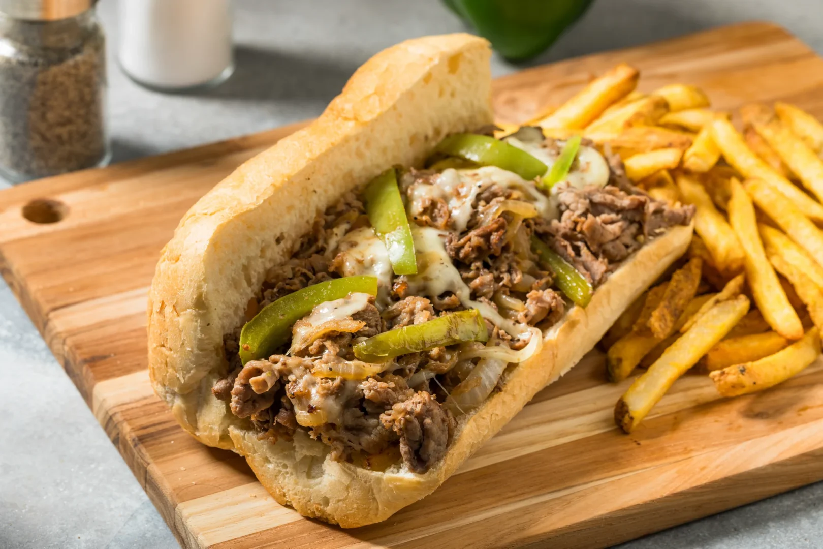 Spelt Sourdough, 4oz Striploin Steak, Onion, Peppers, Mushroom, Applewood, Smoked Cheddar, Spicy Mayonnaise, Crispy Fries. *Served with a Pint of MadriAllergens: 1a, 3, 7, 9, 10, 11, 12